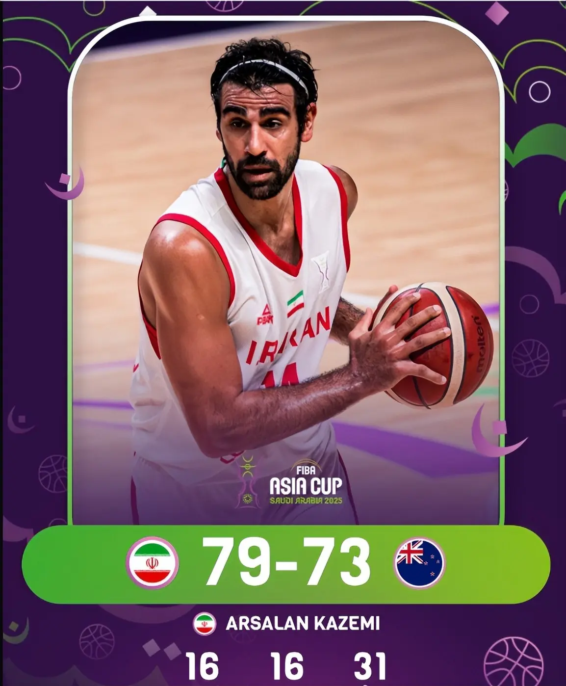 2025男篮亚洲杯3-4名争夺赛,伊朗男篮以6分的优势战胜了新西兰男篮,获得了本届亚洲杯的第3名。